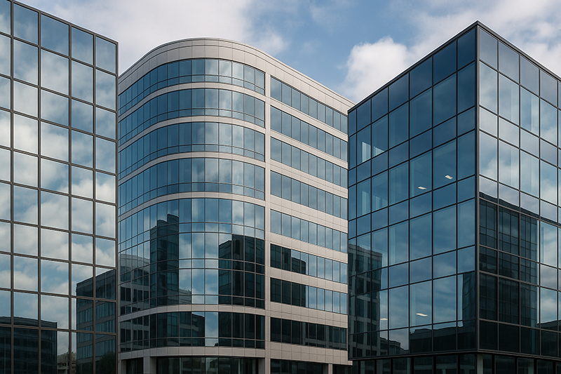 Float, tinted, low-E, reflective, laminated, and tempered glass for façades, partitions, and curtain walls.